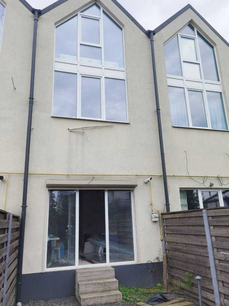 Продам таунхаус, вул. Дачна, 62, с. Софіївська Борщагівка, Бучанський район Площа 100м, 3 поверхи Ділянка 1 сотка Чудовий таунхаус в найближчому передмісті столиці! В будинку зроблений ремонт під чистове оздоблення: - розведено електрику (13 кВт); - розведено водопостачання та опалення; - встановлено газовий двоконтурний газовий котел та радіатори; - стяжка на всіх трьох поверхах (на першому поверсі тепла підлога); - зроблено всі сантехнічні роботи: у двох санвузлах встановлено інсталіції (Італія), на 2 поверсі укладено плитку; - виходи під кондиціонери; - натяжні стелі (ще не зроблені, але вже куплені) - підведено інтернет. У будинку комфортне планування: - на першому поверсі велика кухня-вільтаня (35м), санвузол (зроблена інсталяція, підводка під пральну машину, сушилку), під сходами невеличка комора; - на 2 поверсі 2 роздільні кімнати та санвузол (якісна штукатурка під фарбування чи шпалери); - на 3 поверсі велика кімната (під кабінет чи дитячу ігрову кімнату) чистова штукатурка, стелі закриті гіпсокартоном. Панорамні вікна з чудовим виглядом! Високі стелі, що дать відчуття простору, великі вікна, що дають багато світла. Підведені комунікації - газ, електрика, вода (скважина) та каналізація (септик). Дах утеплений 20см мінвати, стіни 10см пінополістирол. Комплекс заселений, сусіди ліворуч та праворуч вже живуть. Закрита територія, ворота автоматичні. Невеличкий житловий комплекс складається з трьох будинків по 6 таунхаусів. Кожен таунхаус має своє паркомісце перед будинком. Асфальтований підїзд. Супер розташування: тихий приватний сектор з красивими сусідніми котеджами та будинками. При цьому поряд є декілька ЖК з супермаркетами та магазинами. До Києва 1,5 км. Зупинка приміського транспорту в 5-7 хвилинах пішки, до Києва 5 хвилин автомобілем. Спеціаліст Світлана