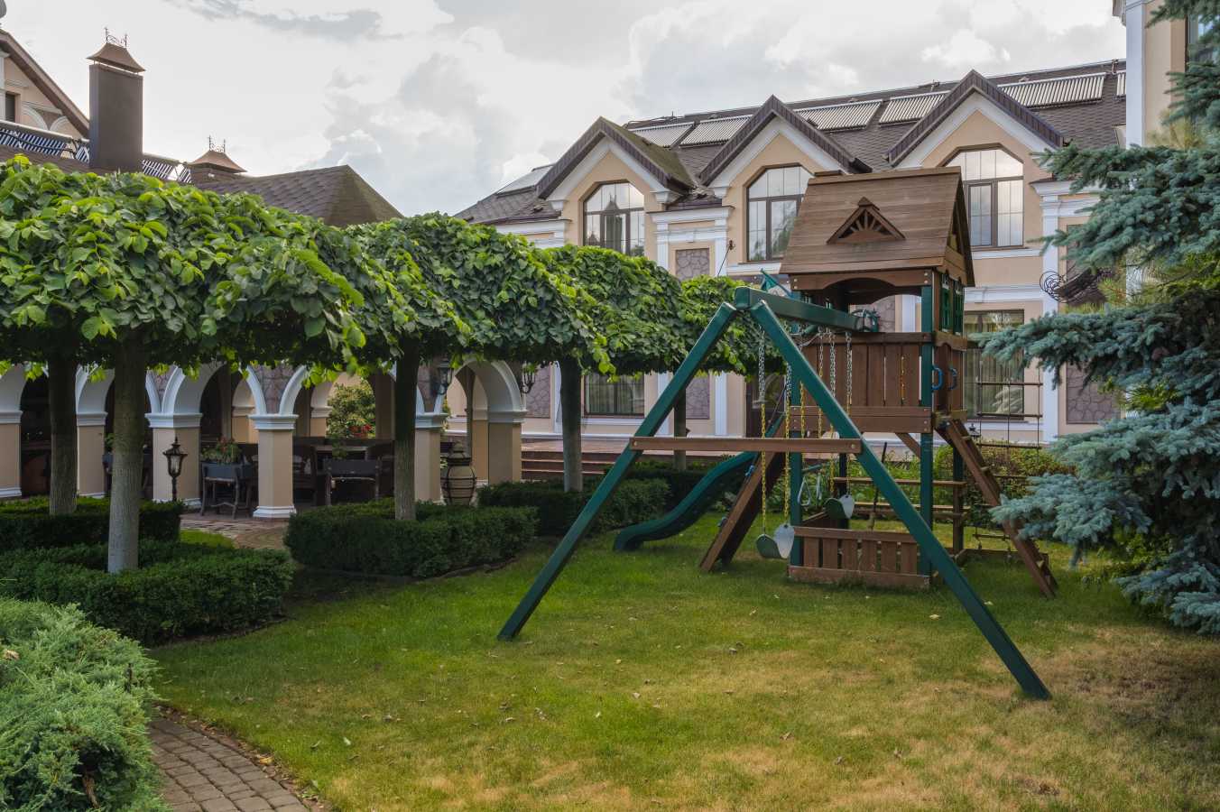 Пропоную Вам у мальовничому передмісті Києва, розглянути на дуже вигідних умовах, оренду приватного житлового комплексу 1500 м2. Який складається з житлового будинку, СПА-комплексу з гостьовими кімнатами та кінотеатром, та будиночка для охорони з прислугою. Площа земельної ділянки 30 соток із гарним ландшафтним дизайном. Житловий комплекс розташований на Київщині, Вишгородський район, с. Лютіж (Сади), до Києва (Оболонь) 25 хвилин їзди машиною. Територія всього домоволодіння огороджена та під охоронною, цілодобовий відеонагляд та сигналізація. Є навіс для 3-х автомобілів та стоянка для 6-ти автомобілів. Дуже зручна та функціональна альтанка на 16 осіб з великим стаціонарним мангалом з автопіддувом та потужною витяжкою. Швидкісний інтернет, своя глибока свердловина, опалення - автоматичний пелетний котел + геліосистема. У будинку виконаний гарний якісний авторський ремонт у стилі сучасної класики, житлових 5 кімнат, кухня 15 м2 повністю обладнана всією необхідною технікою, 3 ванні кімнати, вбиральня, більярдна, винний льох, джакузі, госп.кімната. СПА-комплекс з трьома комфортними гостьовими кімнатами, кухня-їдальня 20 м2 також повністю обладнана всією необхідною побутовою технікою, 3 ванни, басейн (20 м х 4,5 м, глибина від 0,7 м до 2,1 м), сауна, джакузі, купіль, солярій, караоке, кінотеатр, бар, якісний спортзал. Будинок для охорони: 2 житлові кімнати (від 2 до 4 спальних місць), повноцінна кухня, зручний душ, туалет, є льох. Загальна площа комплексу 1500 м2 із ділянкою 30 соток. Без комісії для орендаря, СПП для колег.