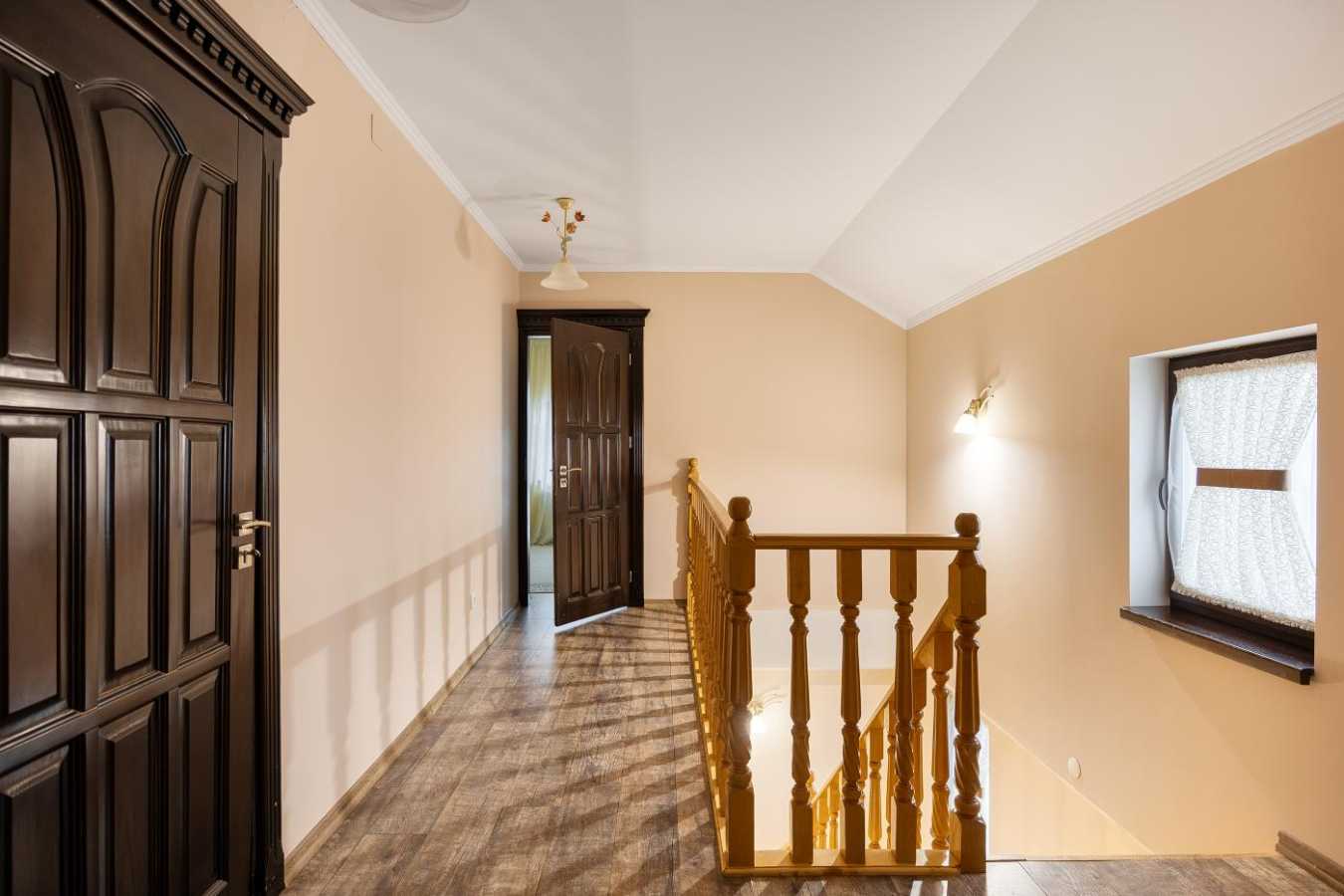 ПРОДАЖ БУДИНКУ Адреса село Східниця, вулиця Шевченка, Львівська область Кількість кімнат пять Поверховість двоповерховий будинок. Матеріал стін дерево Земельна ділянка 12 соток, огороджена. Призначення для будівництва і обслуговування житлового будинку. Загальна площа будинку 158 кв.м, житлова 89.8 кв.м, кухня 12.7 кв.м. В будинку зроблений авторський ремонт, наявні меблі та побутова техніка Опалення електричний та твердопаливний котли. Камін з "рукавами" обігріву . Підігрів підлоги 1 поверху. Балкони два. Санвузол два, суміжні. Третій в гостьовому будинку. Перший поверх будинку включає: дві житлові кімнати, санвузол, кухні, комора. Другий поверх: три житлові кімнати, гардеробна, санвузол. Наявні комунікації: електрика 16 кВт, газ - можливість провести, колодязь, вигрібна яма, центральна вода - можливість провести. Камери спостереження встановлені по периметру території. Є система сигналізації в будинку. Особливості даного будинку це його екологічність. Стіни будинку зроблені з дерева та всередині утеплені піском, вапном, бетоном. Помешкання розташоване в притул Лісу - де сезонно можна збирати ягоди, гриби. Наявний гостьовий будинок з гаражем, котельною та підсобним приміщенням - на першому поверсі. На другому поверсі кухня-вітальня, спальня та санвузол. Альтанка з мангальною зоною доповнюють особливість Будинку. Поруч з будинком: школа, дитячий садок, відділення нової пошти, аптеки, зупинка громадського транспорту. Код обєкта: 4561