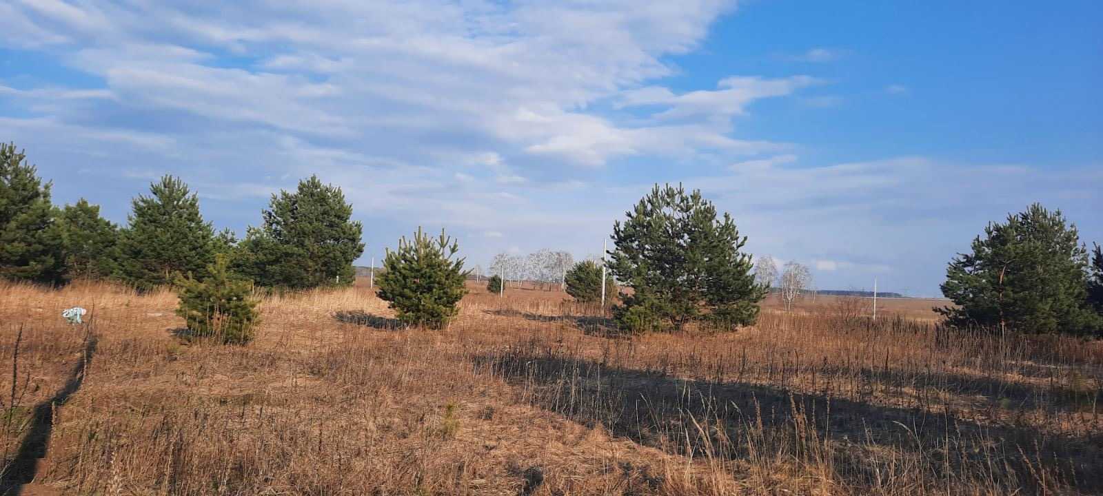 Есть березы, сосны на участке, есть без деревьев.