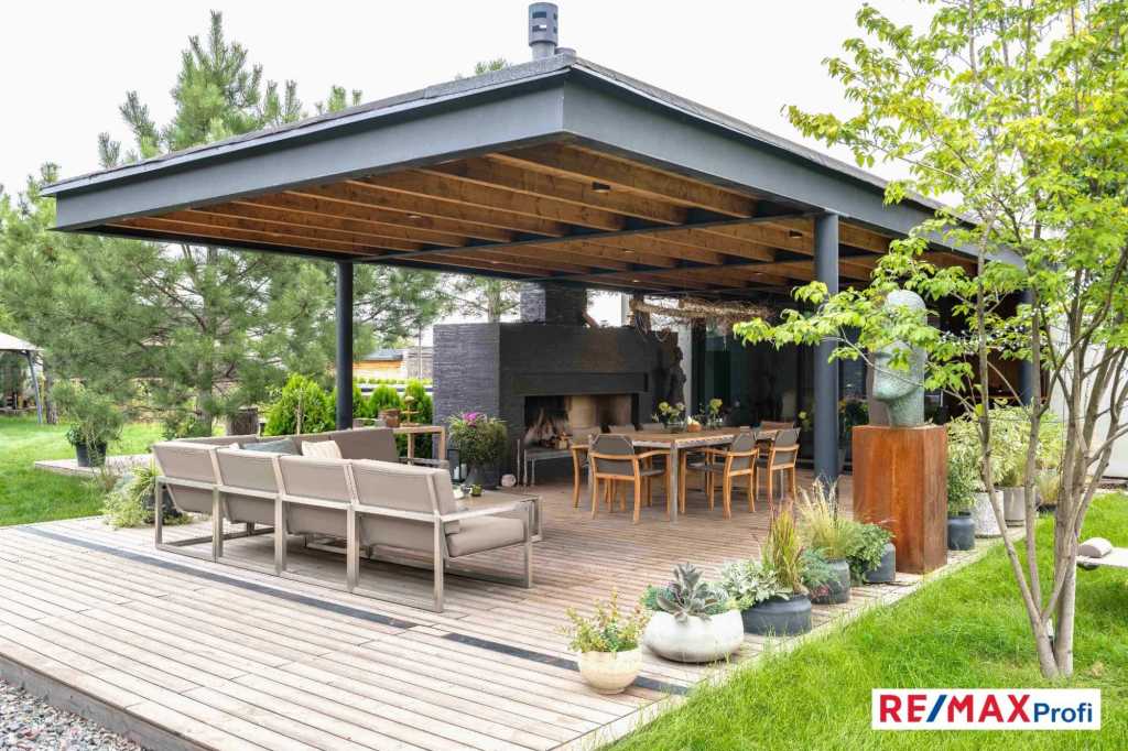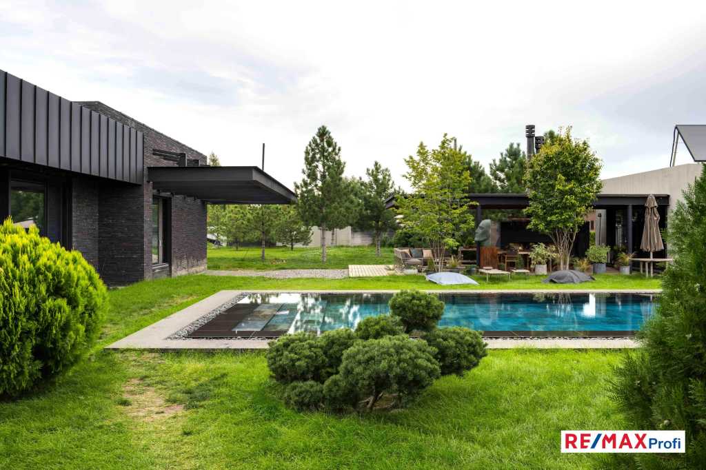 Продаж сучасного будинку з великою ділянкою і високим потенціалом для створення унікального маєтку в с. Іванковичі, Київська область Пропонується до продажу унікальна нерухомість у ближньому передмісті Києва, у мальовничому селі Іванковичі, всього за 15 км від міської межі Києва. Загальна площа ділянки - 60 соток, ідеально підходить для створення приватного маєтку з максимальним рівнем комфорту, усамітнення та безпеки. Цей обєкт не тільки приваблює своїм стилем і якістю будівництва, а й пропонує величезні можливості для розвитку території та втілення найсміливіших дизайнерських ідей. Основні характеристики обєкта: - Одноповерховий будинок площею 467 м, готовий під чистове оздоблення. Побудований за найвищими стандартами з використанням найкращих натуральних матеріалів. Проєкт дизайну розроблений відомим українським дизайнером Сергієм Махно, що дає унікальну можливість адаптувати простір під свої потреби і зберегти баланс між стилем і функціональністю. Будинок вирізняється сучасним дизайном, виконаним у темних тонах із використанням унікальної темної облицювальної цегли. - Простора ділянка в 60 соток пропонує величезний потенціал для розвитку території. Тут можна створити унікальний ландшафтний дизайн з басейнами, фонтаном, садами, зонами відпочинку і навіть додатковими будівлями, як, наприклад, гостьові будинки, спортивні майданчики або особисті арт-обєкти. - Важливо! На території збудовано повноцінний підземний бункер для укриття в випадку небезпеки.. Це просторе приміщення, яке складається з декількох кімнат, загальною площею більше 100м2. Бункер побудовано з монолітного армованого залізобетону. Товщина стін та перекриття 40 см! Крім того, зверху бункера земляний навал біля 2 метрів товщини. Реалізовано два альтернативних вихода з бункера. Повна безпека та комфорте перебування! - Будинок-зруб площею 165 м, повністю обладнаний для проживання, ідеально підходить для використання в якості банного комплексу або гостьового будинку. Якісне оздоблення, натуральні матеріали створюють атмосферу тепла та затишку. Його стиль ідеально поєднується з ідеєю створення відокремленого заміського простору, де можна розслабитися далеко від міської метушні. - Комплекс для відпочинку з критою терасою, каміном і кімнатами для релаксу, На терасі встановлено величезний камін, який створює затишну атмосферу в будь-яку пору року. Усередині комплексу розташована сауна на дровах, санвузол, що робить його ідеальним місцем для повного розслаблення і відновлення. - Великий відкритий басейн розміром 5х12 метрів, який стане центром літнього відпочинку на вашій ділянці. - Окремий Барбекю-комплекс із піччю для піци та професійним тандиром додає особливого шарму цьому маєтку, створюючи ідеальні умови для організації як приватних сімейних заходів, так і масштабних прийомів гостей. Інфраструктурні можливості та перспективи розвитку: - Доступ до ділянки та будинку обмежений шлагбаумом і двома розсувними воротами, що забезпечує високий рівень безпеки. - На ділянці є будиночок охорони, повністю обладнаний для автономної роботи і проживання персоналу. - Територія оточена високим бетонним парканом заввишки 3 метри, що забезпечує додаткову безпеку і усамітнення проживаючих. - Дві автономні свердловини понад 100 м кожна і дві лінії електропостачання по 25