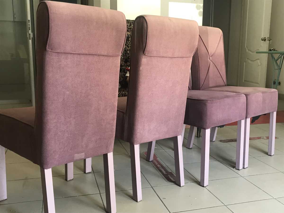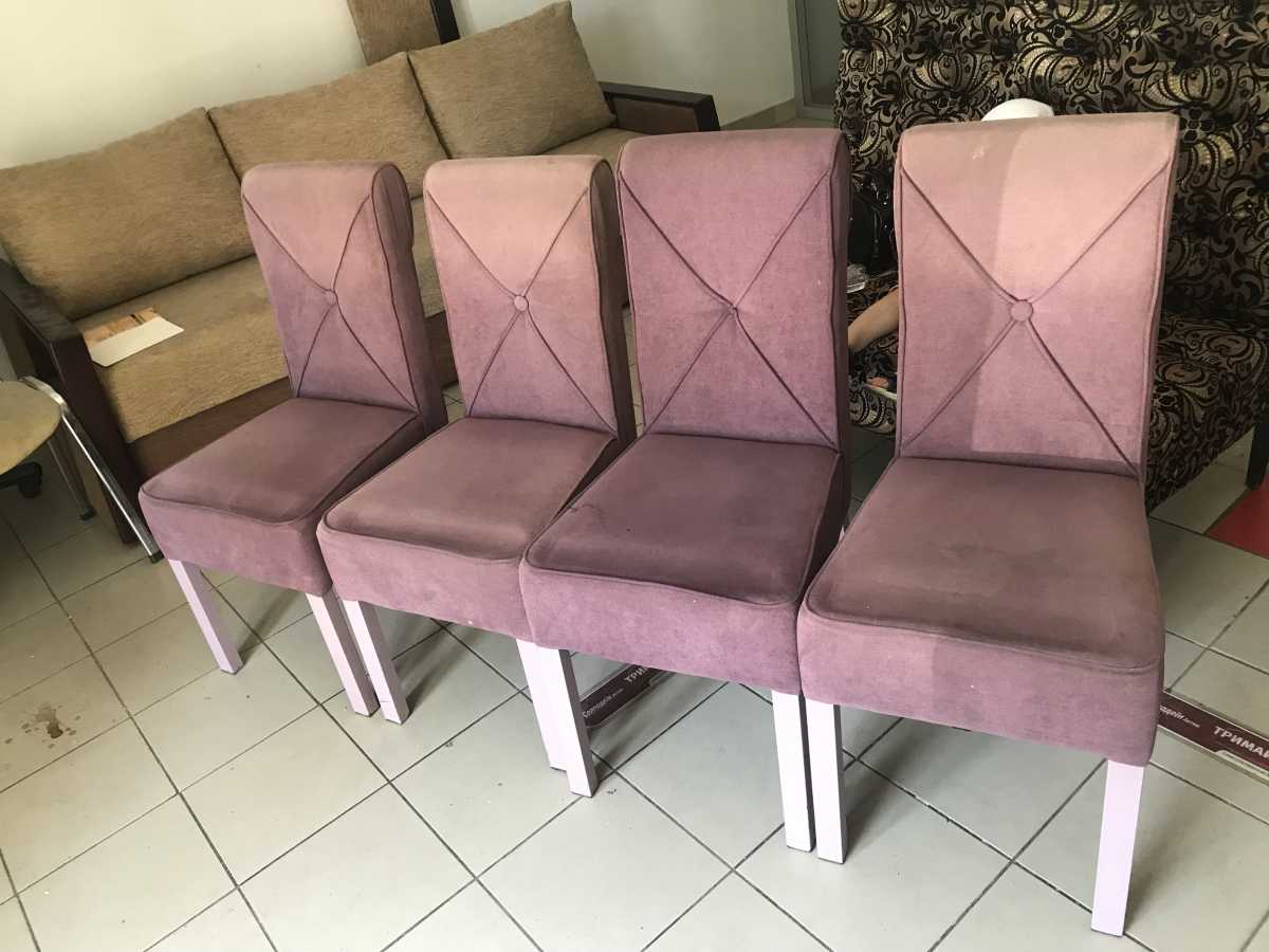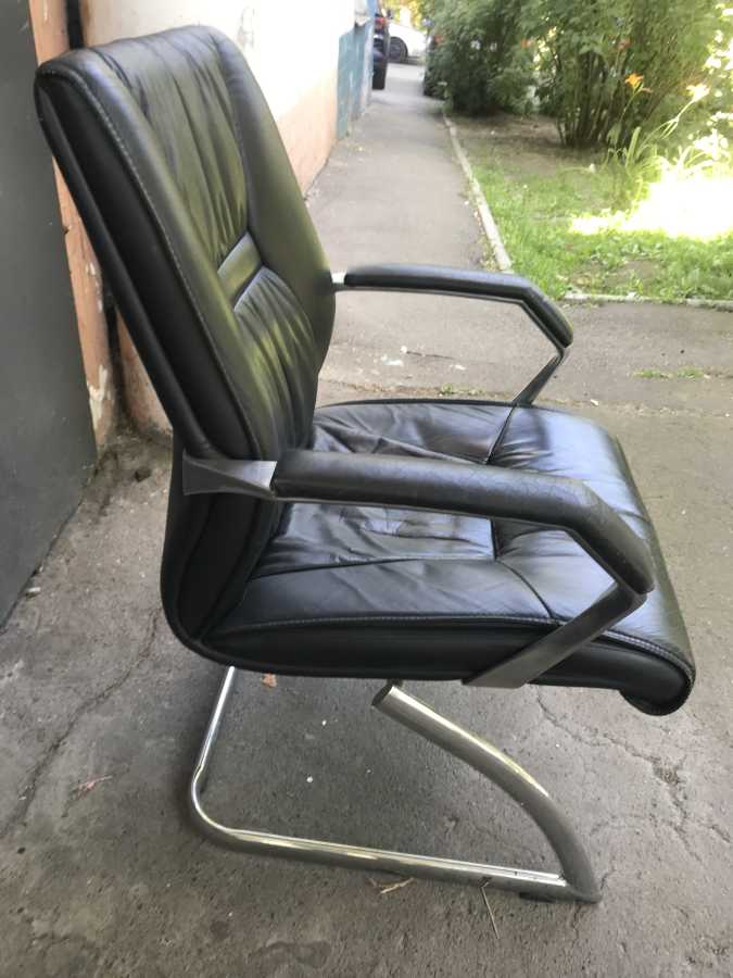 СТУЛЬЯ на 4-х ножках состоят из мет.каркаса.и спика., кожанное черное стуло на хром ножке есть разного состояния, стулья на деревянных ножках с белого кожзама нужно на перешивку, коричневое стуло на две персоны шир-1м.20см-ткань в хорошем состоянии а ножки как на фото. доп.инфо-(097)555-4-999.