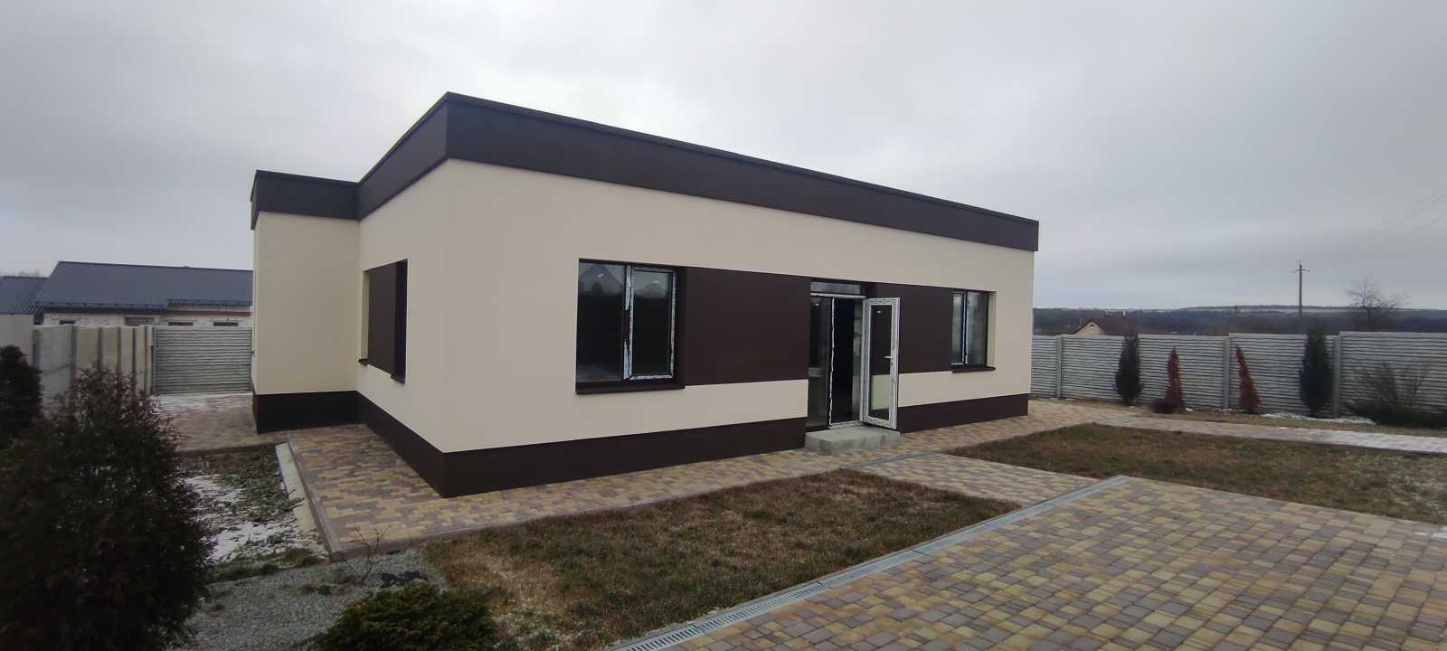 Продам дом в пригороде Днепра, с.Братское, район Новоалександровки, от города 7 км. - Дом красивой современной постройки 135м2, в одном этаже, есть дизайн проект. - Фундамент: бетонная подушка, фбс блоки, плита, высота фундамента 1800мм. - Стены: газоблок 400 мм, утеплен 50 мм пенопласт. - Отделка: декоративная крошка + барашек. - Крыша: пенобетон 400 мм+рубероид в 3 слоя. - Участок: 5,5 соток, выложен плиткой, ландшафтный дизайн. - Все документы, введён в эксплуатацию, земля право собственности + кадастровый номер. Цена 79000$